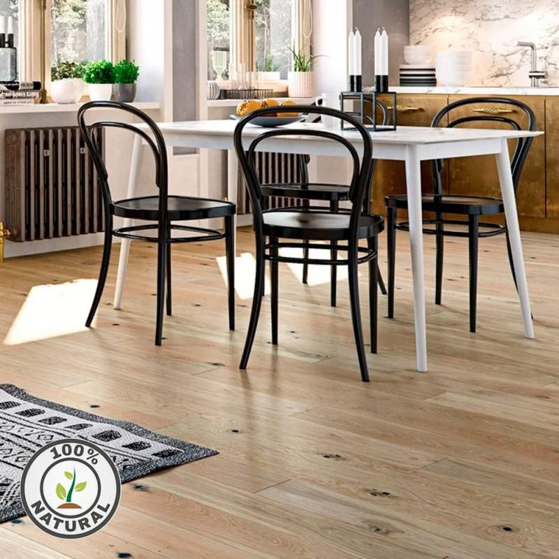 Пользуемся этим паркетом уже несколько месяцев. Нам он очень нравится, светлый, теплый, красивый! Из плюсов могу отметить его высокую прочность, у нас двое детей и различным повреждениям паркет подвергается очень часто. Несмотря на это, смотрится доска также классно. Конечно на светлом цвете хорошо выделяются темные сучки, но мы быстро к ним привыкли, а за счет цвета и сучков вообще не видно никаких изъянов!