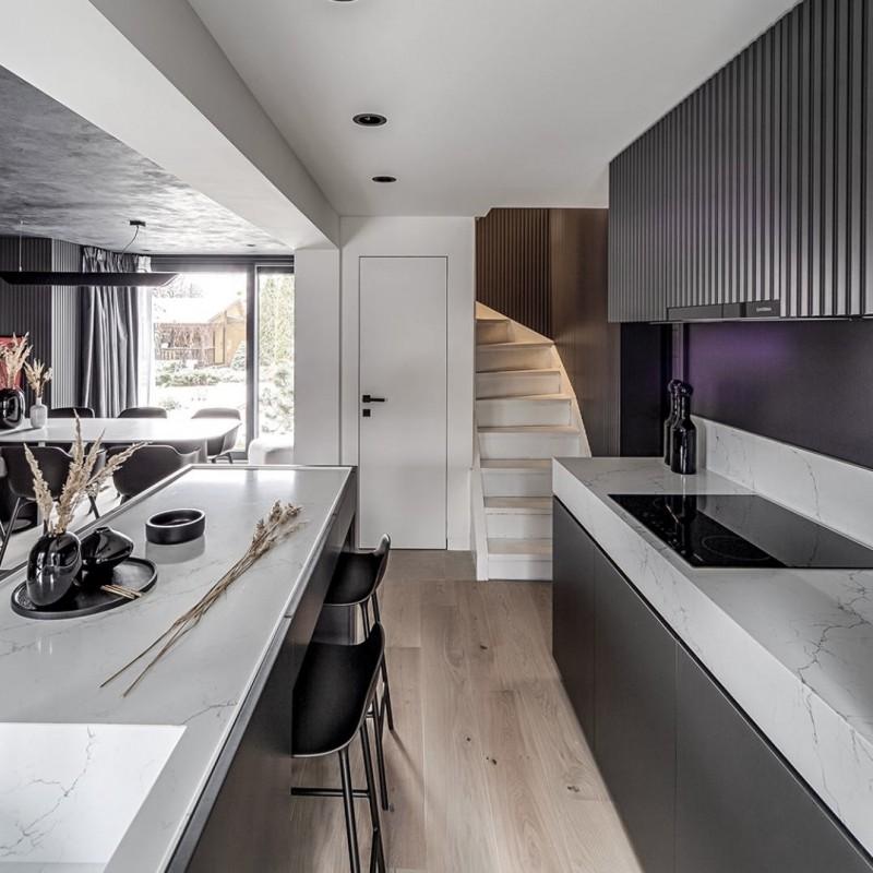 Однополосная серая дубовая паркетная доска Touch из коллекции Senses Collection от компании Barlinek – это идеальный вариант напольного покрытия в доме, где есть большие помещения, и где вы желаете сохранить ощущение свободы и воздушности пространства.