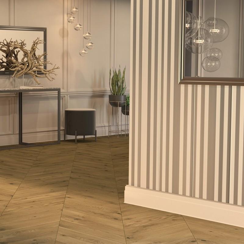 Изготовленная из древесины настоящего дуба доска Ontario Piccolo Chevron имеет шевронный узор и шикарный оттенок, в котором сочетается светло-коричневый и золотистый цвет. Она идеально подойдет для людей, которые уважают традиции, но хотят идти в ногу со временем. Ведь Ontario Piccolo Chevron от Barlinek – это самое напольное покрытие, которое эффектно оживит современные композиции и станет гармоничным дополнением классического декора. Более того, созданная в виде французской елки, эта доска наполнит квартиру теплом и уютом родного дома.