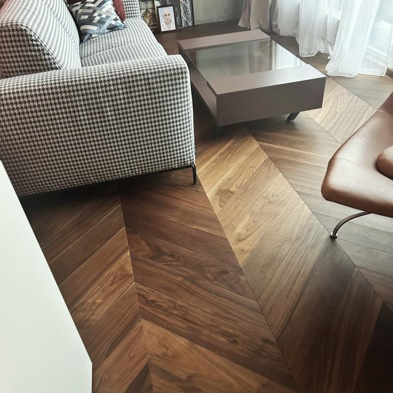 Отзывы о "Паркетная доска Французская Ёлка Орех Американский Chevron, браш, масло, 97 мм" -