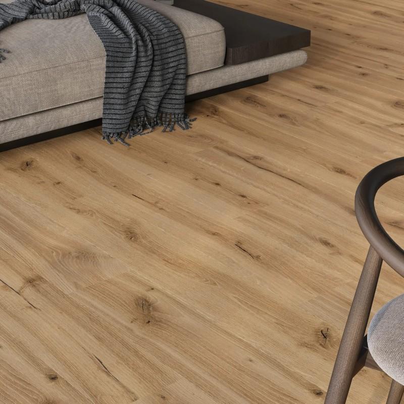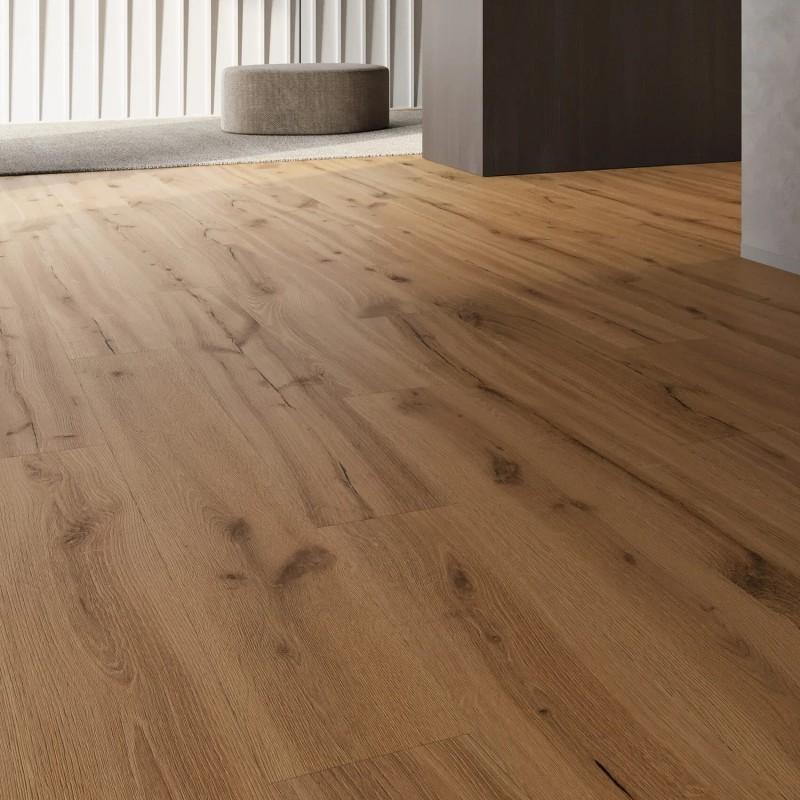 Виниловый пол "Дуб Amber" привносит естественную свежесть и подчеркивает уют помещения. Его теплый, натуральный оттенок имитирует деревянную текстуру, добавляя элегантности и гармонии интерьеру. Идеальный выбор для современного и комфортного пространства