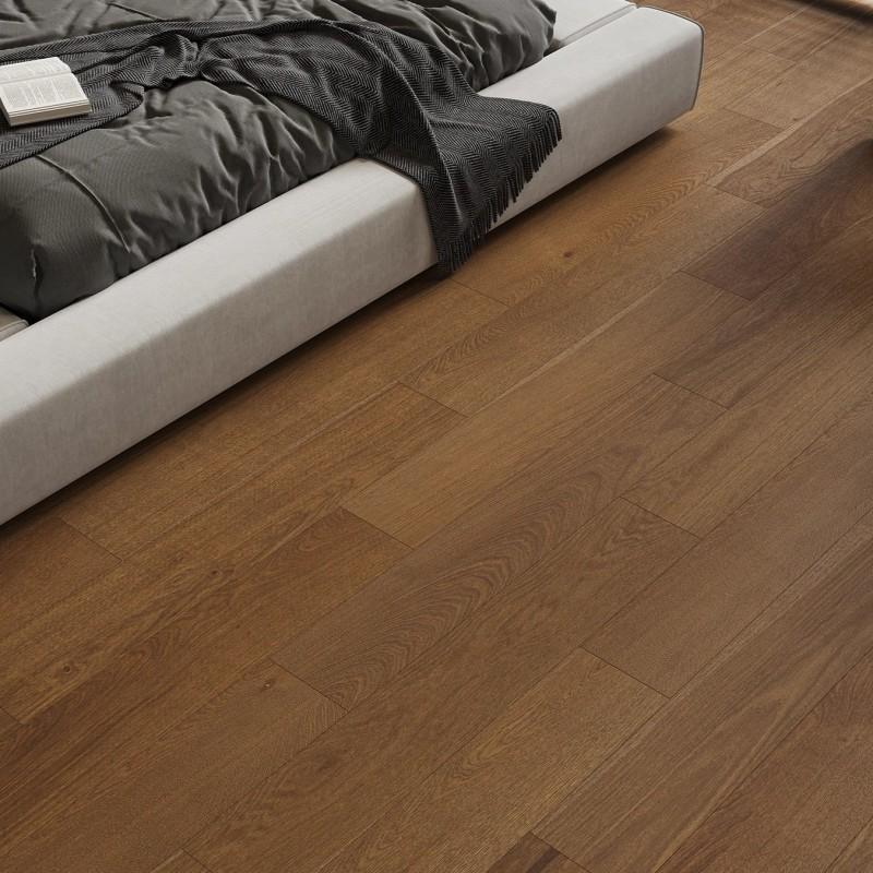 Дубова підлога Barlinek Дуб REVONA у глибокому коричневому відтінку вирізняється елегантністю та виразним характером. Насичений тон підкреслює природну текстуру деревини, додає інтер’єру благородства, глибини та створює атмосферу стриманої розкоші.