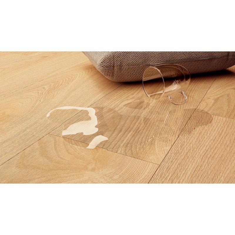 Водостійкість. Покриття не боїться вологи, не розбухає та не деформується навіть при тривалому контакті з водою. Ідеально підходить для кухні, коридору та інших приміщень із підвищеною вологістю.